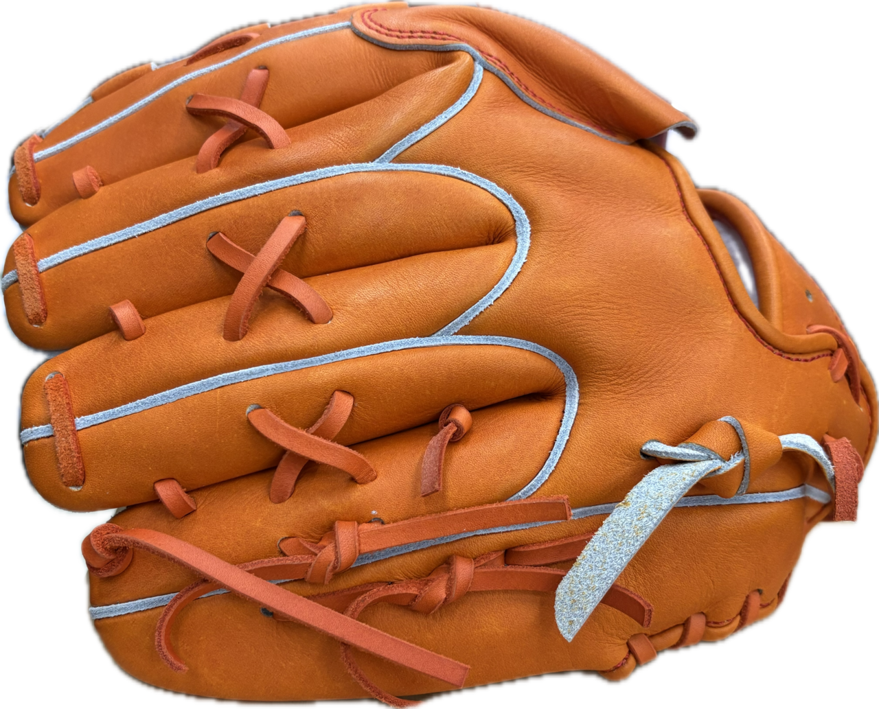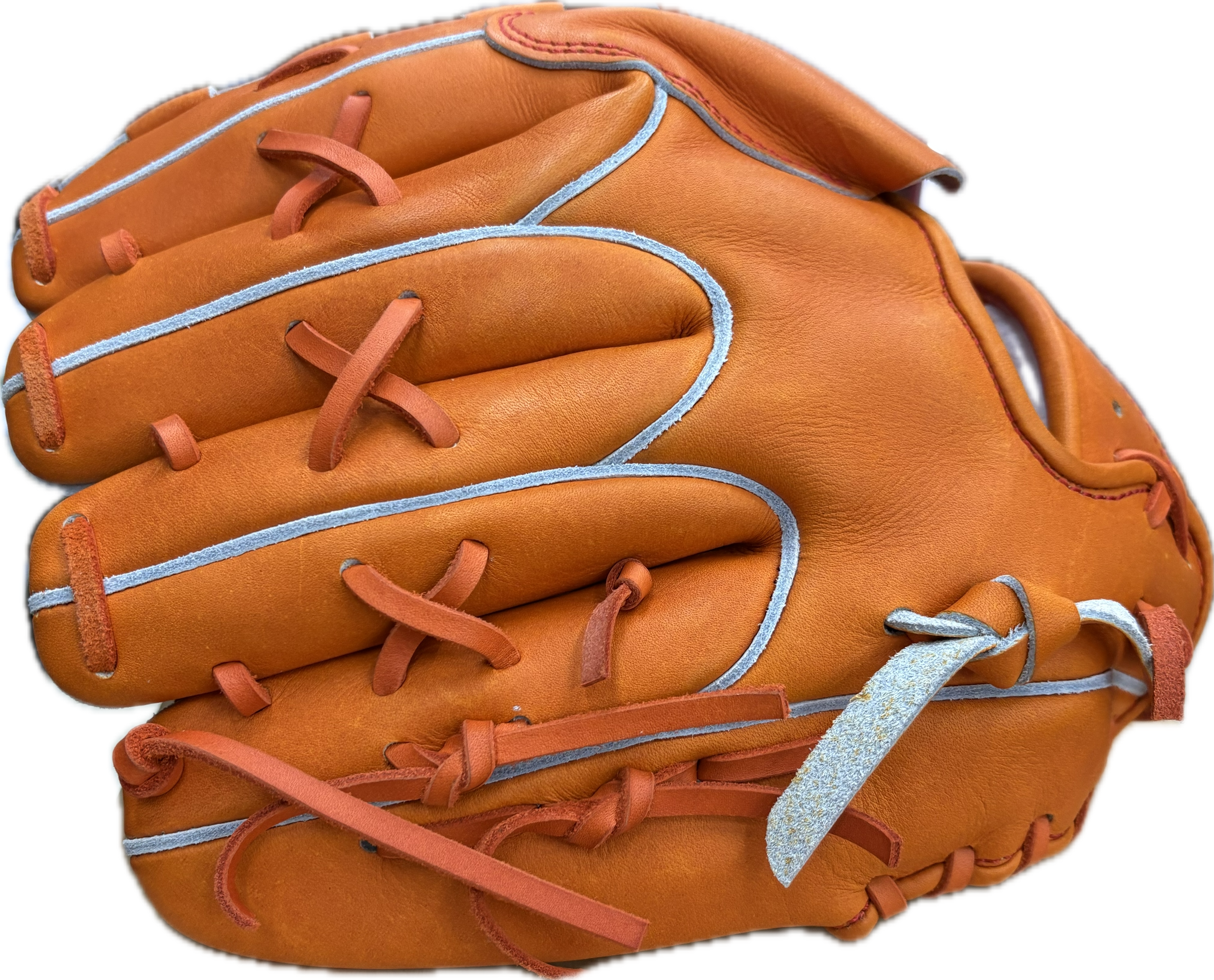 手のひらで捕るために考案された、グラブに関節を創るという画期的な型付けで、加工後すぐに使用いただける即戦力グラブになります。