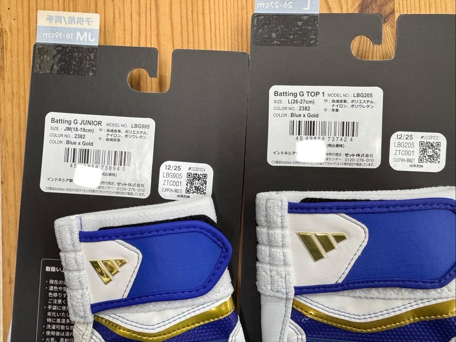 【新品未使用】 アディダス バッティング手袋 両手用 Batting G JUNIOR ジュニア用 ブルー×ゴールド(2382) LBG905